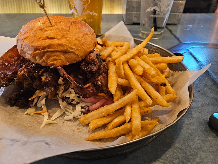 That bison burger as the literal consumption of place - eating the thing that makes Montana Montana while listening to stories of elsewhere.