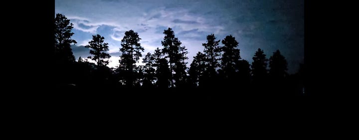 I was really disappointed that I'd actually needed to surrender to nature here after passing through bear country - the storm moved around me over the span of several hours. My site barely got any rain, but the lightning was constant. Several bolts every second, from both cells that passed on either side. A surreal light show in otherwise black skies, and the first real weather I'd seen since... September last, when I was in Charlotte during Helene.