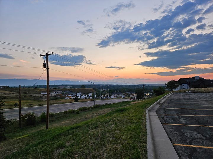 Yeah, it's a prescription. The lowest possible dose, but magical stuff either way. Sheridan was the first place since I'd started where I arrived without a true next destination in mind. I'd a vague sense of where I'd camp on my way to Rapid City, but without an address or a reservation for either. I managed to get about a week's worth of schedule on the calendar, and wrote "Memetic Necromancy" in the park, but missed lunch entirely. Decided to seek out more local beef.