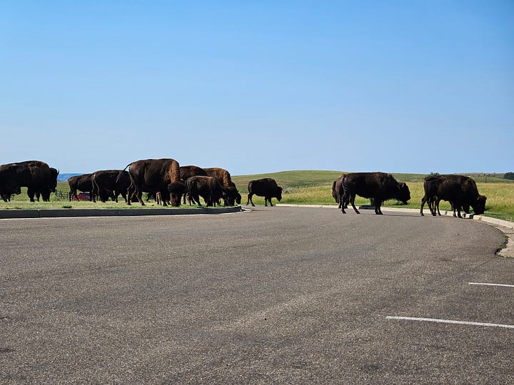 The buffalo traffic jam as perfect Dakota metaphor - that 102-degree forecast and the bison just walking through it all, indifferent to both weather and infrastructure. They've survived worse than your Tesla's air conditioning anxiety.